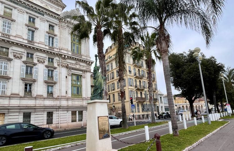 これはニューヨークの自由の女神像を制作したフランス人彫刻家、バルタール(Bartholdi)によるオリジナルの小型レプリカのひとつ。19〜20世紀初頭にニースへ多くのアメリカ人が滞在していた歴史を象徴する存在です。 静かに海を見つめながら街の記憶を伝えているような佇まいです。