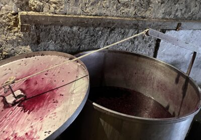 発酵は容量16〜25ヘクトリットルのステンレスタンクで行われ、アルコール発酵中は1日2回、手作業でピジャージュ(果帽を押し沈める作業)を行う(※私が滞在時はるモンタージュを実施)。