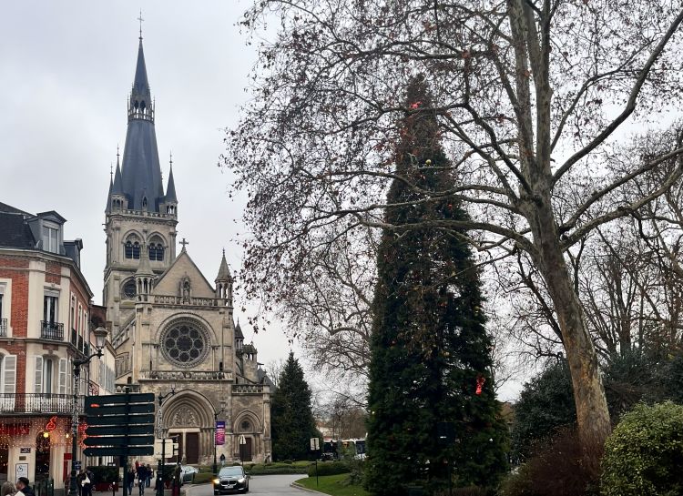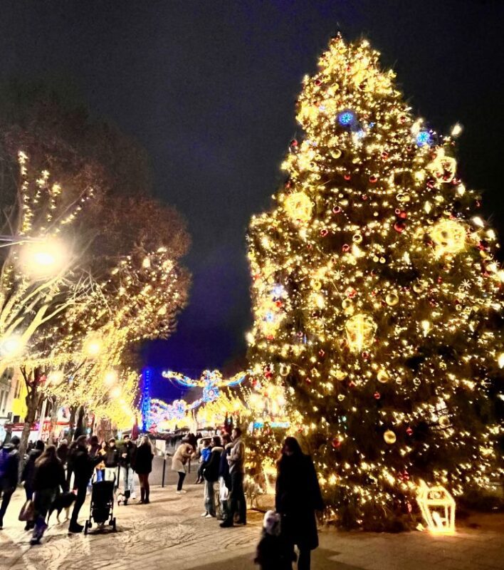 駅前に立つ大きなクリスマスツリーに、まず心を奪われます。その先には、湿った石造りの古い教会。祝祭と信仰、そして日常が、無理なく重なり合う風景が静かに広がっているように感じられました。