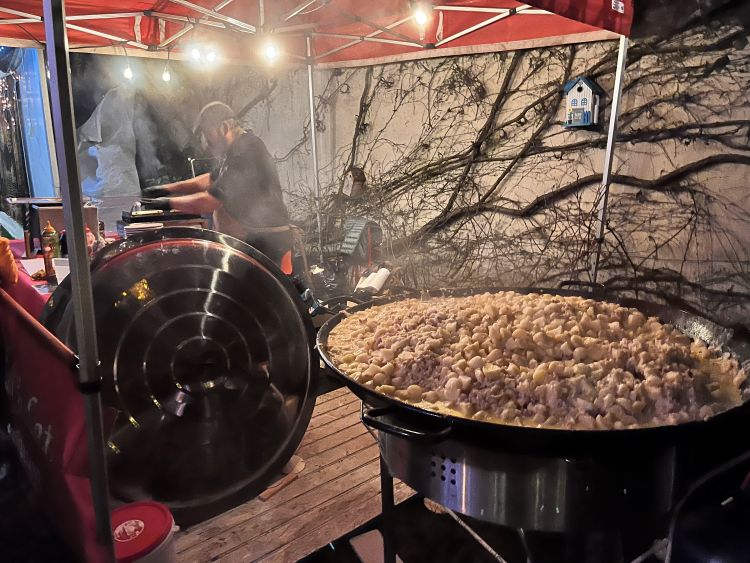 通りには、試飲用のシャンパーニュのほか、牡蠣などの軽食も並びます。ロゼのホットワインが目に入り、少し心が揺れましたが、ここは我慢。