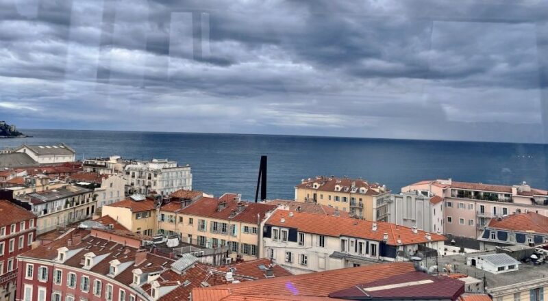 高い場所から街を見下ろすことで、普段の生活ではあまり意識することのないニースの地形や街の広がりが、ひとつの風景として立ち上がってきます。リゾート地、観光地として語られることの多いニースですが、上空から眺めると、その美しさゆえに観光地とならざるを得なかった側面だけでなく、海と山に挟まれた土地に人々の生活が積み重なってきた街であることが、改めて実感されました。