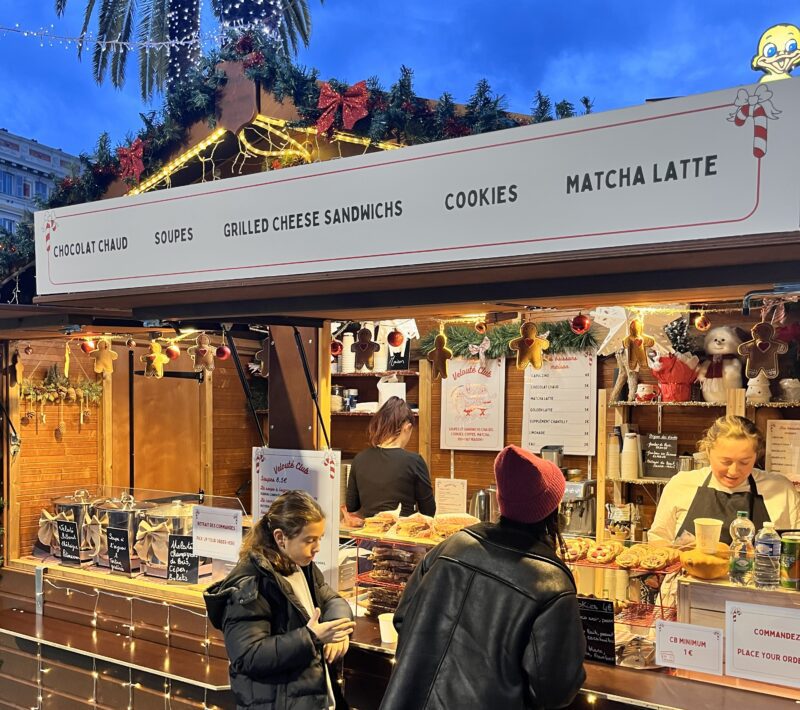 抹茶ラテが、ホットワインと違和感なく並んでいる様子は、国際色の強いニースらしい?光景です。