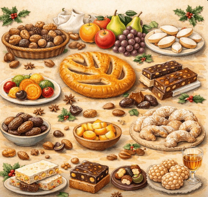 この時期になると、スーパーの果物売り場にドライフルーツが並んでいるのを見かけます。これはキリストと12使徒を象徴する13種類のお菓子をクリスマスに用意する習慣で、ドライフルーツやナッツ、ヌガー、干しイチジクなど、素朴ながらそれぞれ意味を持つ甘味が揃います。すべてを厳密に揃える家庭は減っているようですが、「いくつかは必ず用意する」という感覚は今も残っているように感じました。