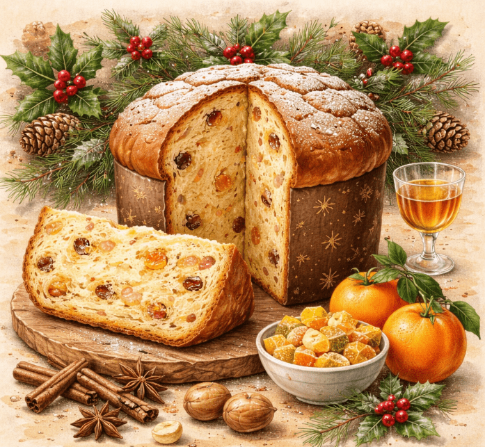当初はシュトーレンを探していたのですが、スーパーで大量生産されている商品しか見かけませんでした。パン屋の店員さんに聞いてみたところ、この地域のクリスマスで主流なのは、パネトーネとのこと。