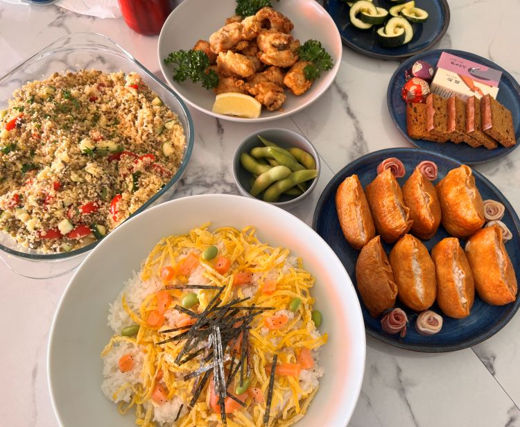 年が明けてからは、私の番です。年明け早々にクラスメイトを自宅に招き、日本の家庭料理を中心とした昼食を用意しました。