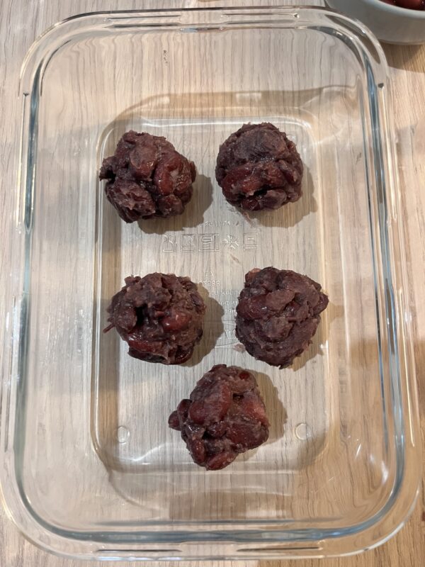 せっかくなので、豆を少し残してあんこだけの鹿の子(かのこ)を作ってみました。
