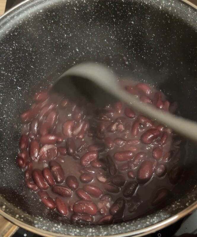 味見をしてみたら、豆のホクホク感は弱め、皮も少し硬め。大納言に比べるとやや歯ごたえが残ります。