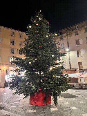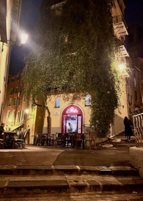 午後の難解な統計の授業を終えた後、ニースの旧市街地へ向かいました。まだ6時前なのに、辺りはもう真っ暗。気温は5度で、この地域の年間最低レベルの寒さ。まだ人気はあまりなく、旧市街の古い街並みは穏やかな街灯に点され、幻想的な雰囲気が漂っていました。